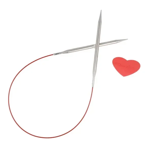 Complete set met verwisselbare rondbreinaalden van hoogwaardig roestvrij staal. De spitse Lace-punten zijn perfect voor fijn breiwerk zoals ajour, noppen en kabels. De superflexibele, knikvrije kabels hebben een stalen kern en rode nylon coating.